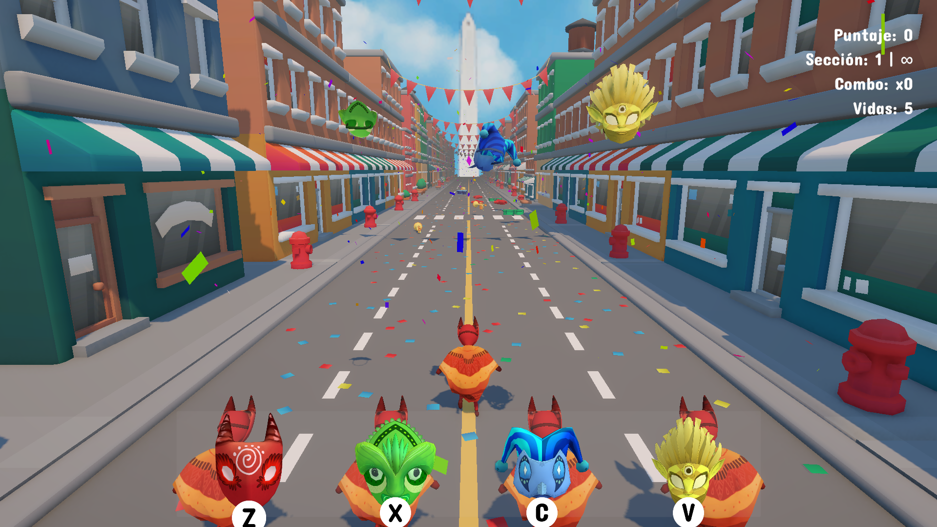 Eres el director de una vibrante comparsa, y manejas el poder arcano de máscaras mágicas para guiar a tu bailarín principal por las vibrantes calles de Buenos Aires. Mantén el ritmo acompañado, los colores estallando y la energía en ebullición: ¡lidera el desfile hasta su final triunfal antes de que la canción se apague!